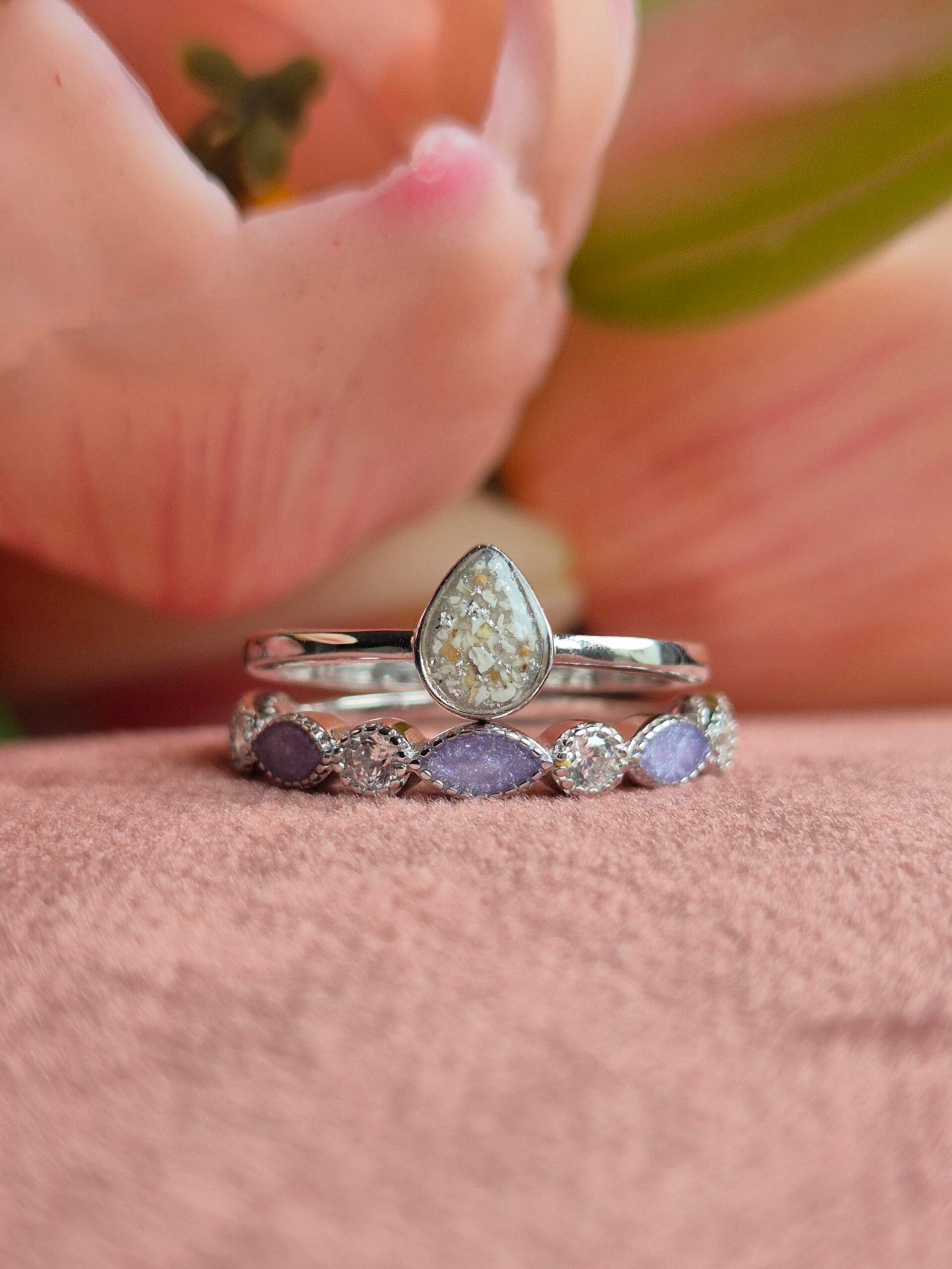 Deze ring van 925 Zilver heeft een druppel/peervorm en is er in 3 verschillende grootte. Vind de perfecte maat voor jouw dierbare herinnering. Subtiel of wat meer in het oog springend.